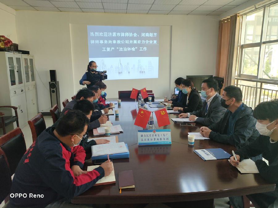 为全力支持民营企业抗击疫情,帮助民营企业顺利复工复产,济源产城融合示范区司法局、济源产城融合示范区工商业联合会、济源市律师协会联合出台《深入开展民营企业“法治体检”活动服务疫情防控和复工复产的实施方案》。从四月开始,开展为期两个月的专项“法治体检”活动,帮助企业有效防范法律风险,尽快恢复正常生产经营秩序。