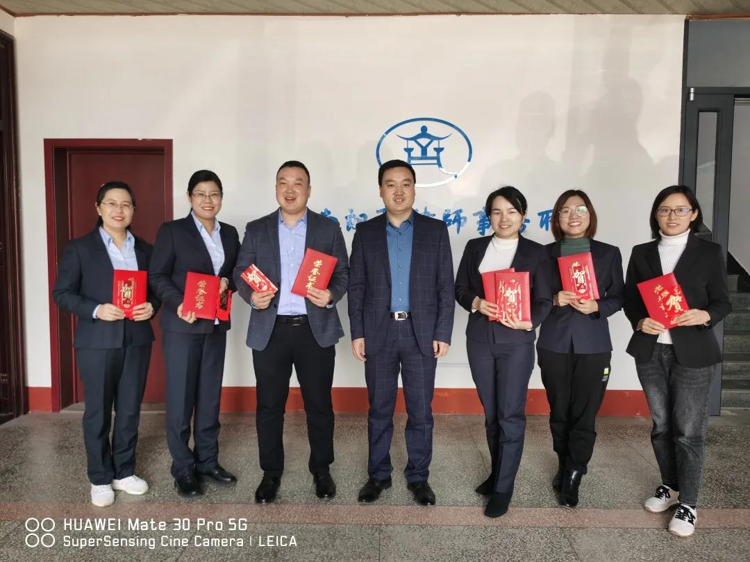 2020年,在新冠疫情的考验下,朗齐律师事务所逆风前行,稳中有升,基本完成全年工作目标,这其中,离不开每一位朗齐人的努力和付出。为表彰先进、树立典型,发挥榜样示范引领作用,总结会上,经过民主评选,律所评选出两名先进个人张立红、刘盼盼,一名进步奖王帆,两项优秀案例奖付启兵保险合同纠纷、王帆买卖合同纠纷,两名优秀卷宗奖杨宁、吕艳丽。齐波律师为获奖人员颁发荣誉证书。
