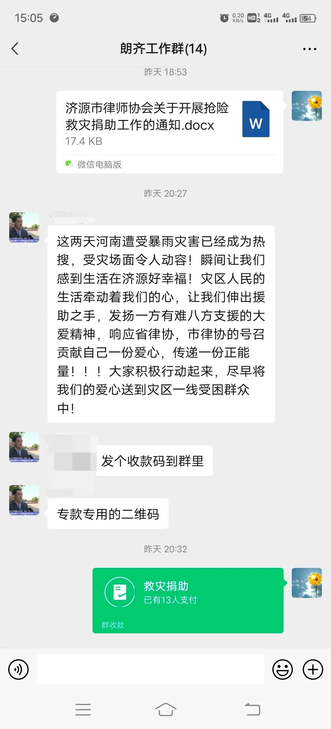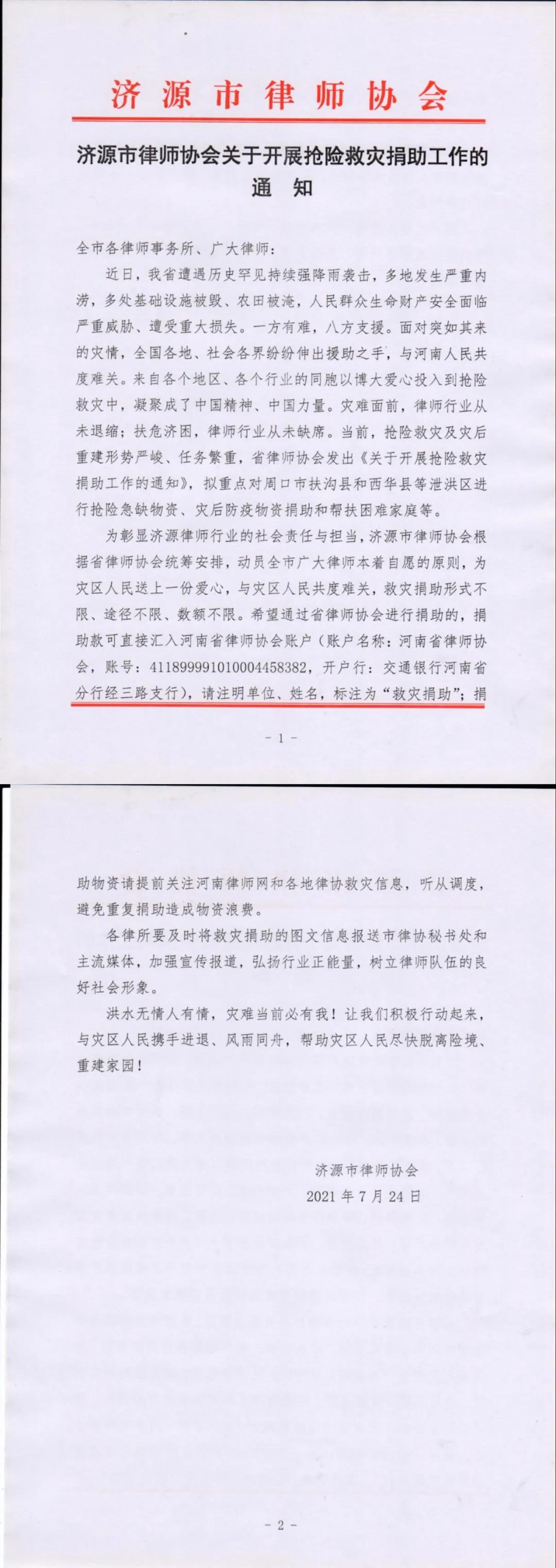 河南朗齐律师事务所响应省律协、市律协的号召,发扬一方有难,八方支援的大爱精神,积极组织抗洪救灾捐款活动,活动一经发起,全体律师积极响应,纷纷在第一时间慷慨解囊,为灾区人民送上一份爱心,与灾区人民共度难关。