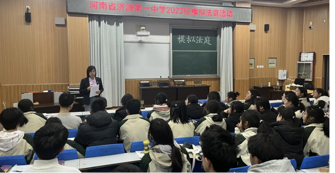 来源:河南朗齐律师事务所 作者:张律师 时间:2024-10-092024年2月29日晚上6:40,一场别开生面的模拟法庭活动在济源市第一中学进行。